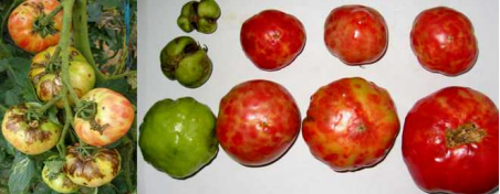 진딧물에 의해 전염되며, 즙액으로도 감염된다. 이들 바이러스는 토마토에서는 드물게 발견되나 감염되면 잎, 줄기, 열매가 부분적으로 썩어 상품성이 크게 저하된다. 목화진딧물은 6월 중순부터 날개 달린 성충(유시충)이 발생해 온실로 날아 들어오므로 미리 진딧물 약제를 살포하여 방제한다.
