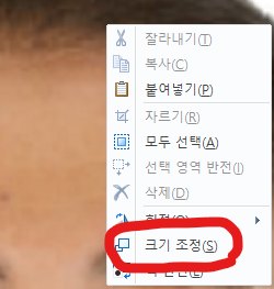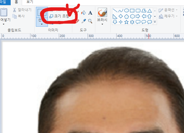 그림판 메뉴 중에 <크기 조정> 버튼을 클릭한다.