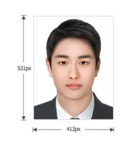온라인 여권사진 기준은 가로 413, 세로 531이 권장사항이다.