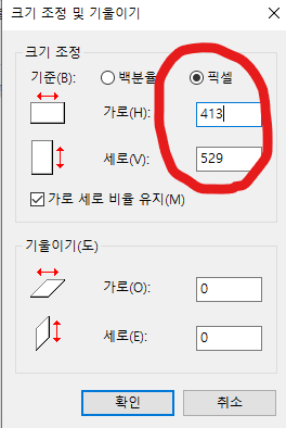 <가로 세로 비율 유지>에 체크가 된 상태로,