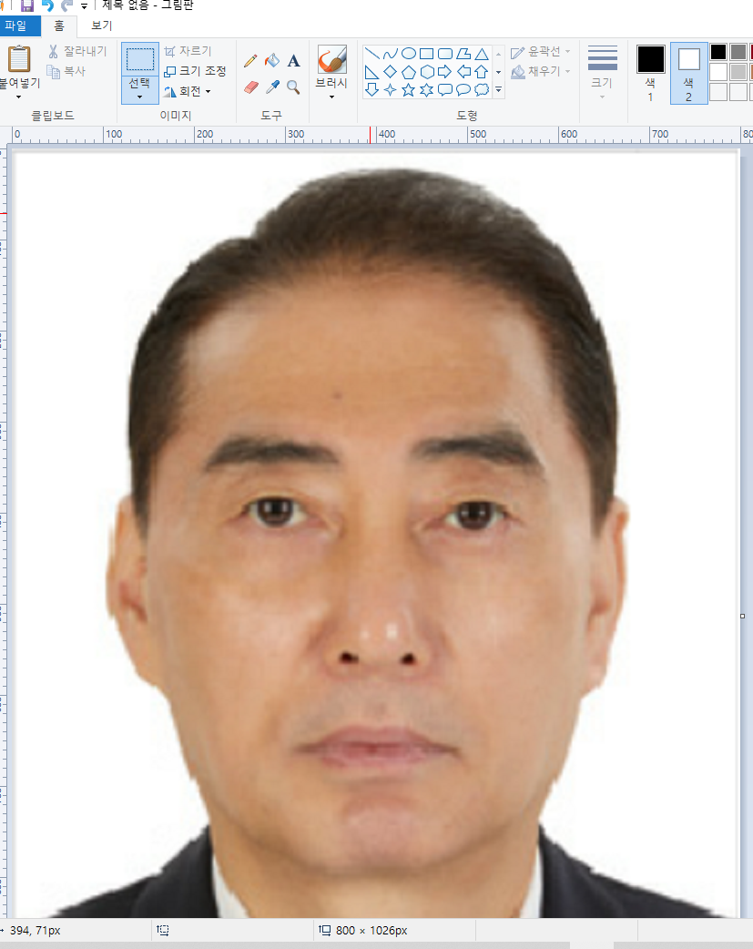 머리길이는 가로 3.5cm 세로 4.5cm 사진 기준, 3.2~3.6cm가 되도록 촬영해야 함.