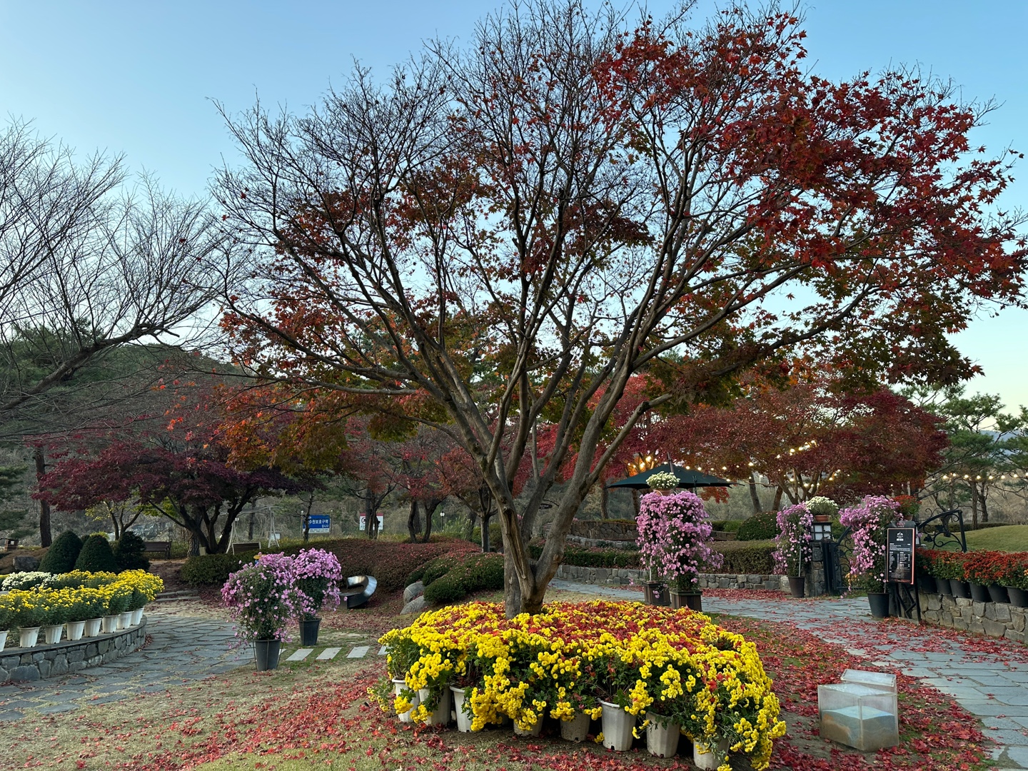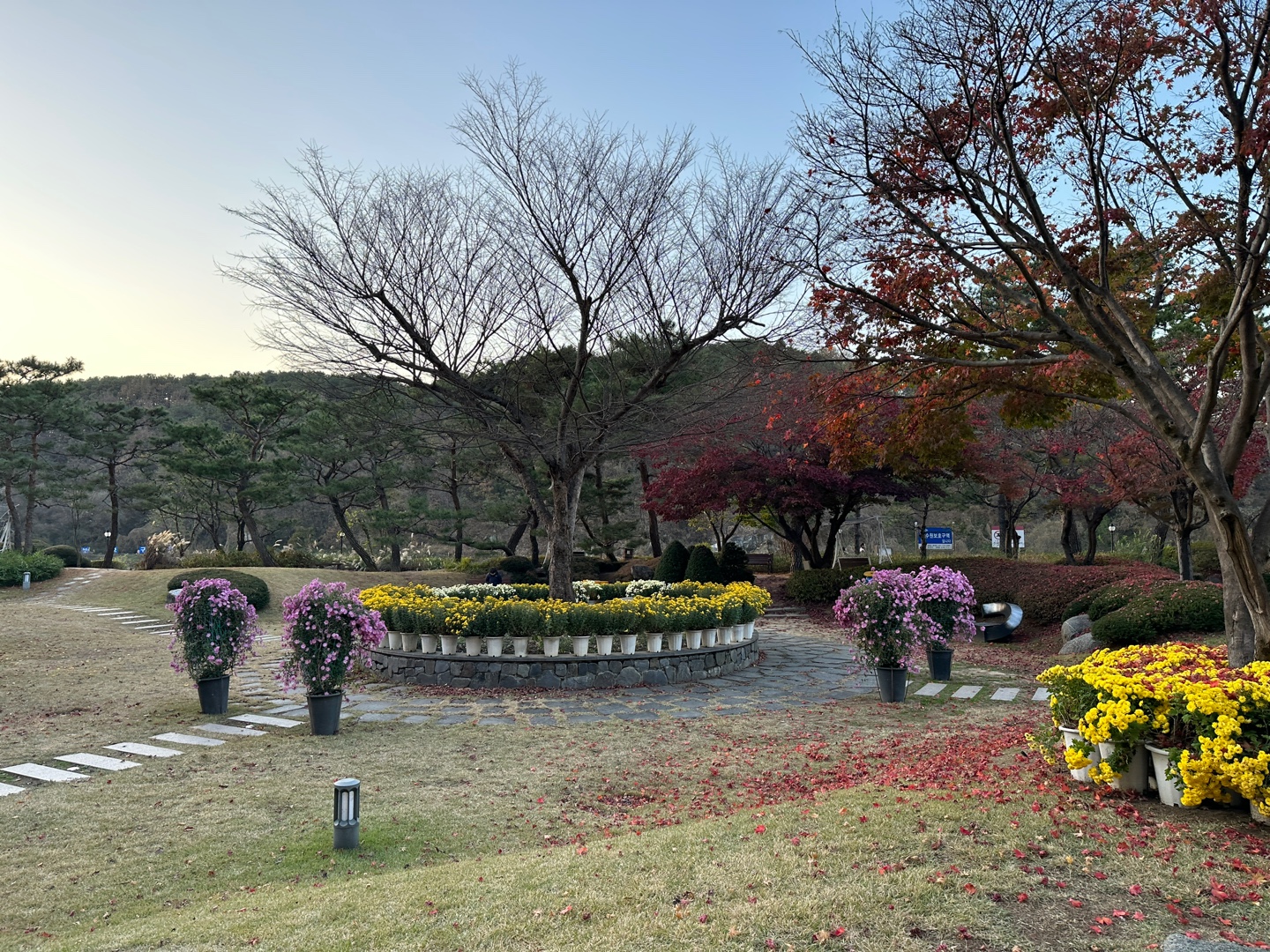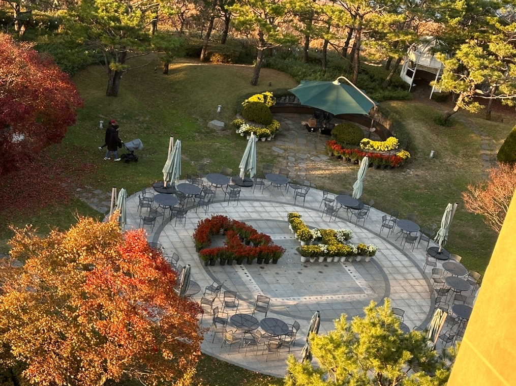 분수가 있던 곳은 국화 화분으로 [소노]라고 장식되어 귀엽다.