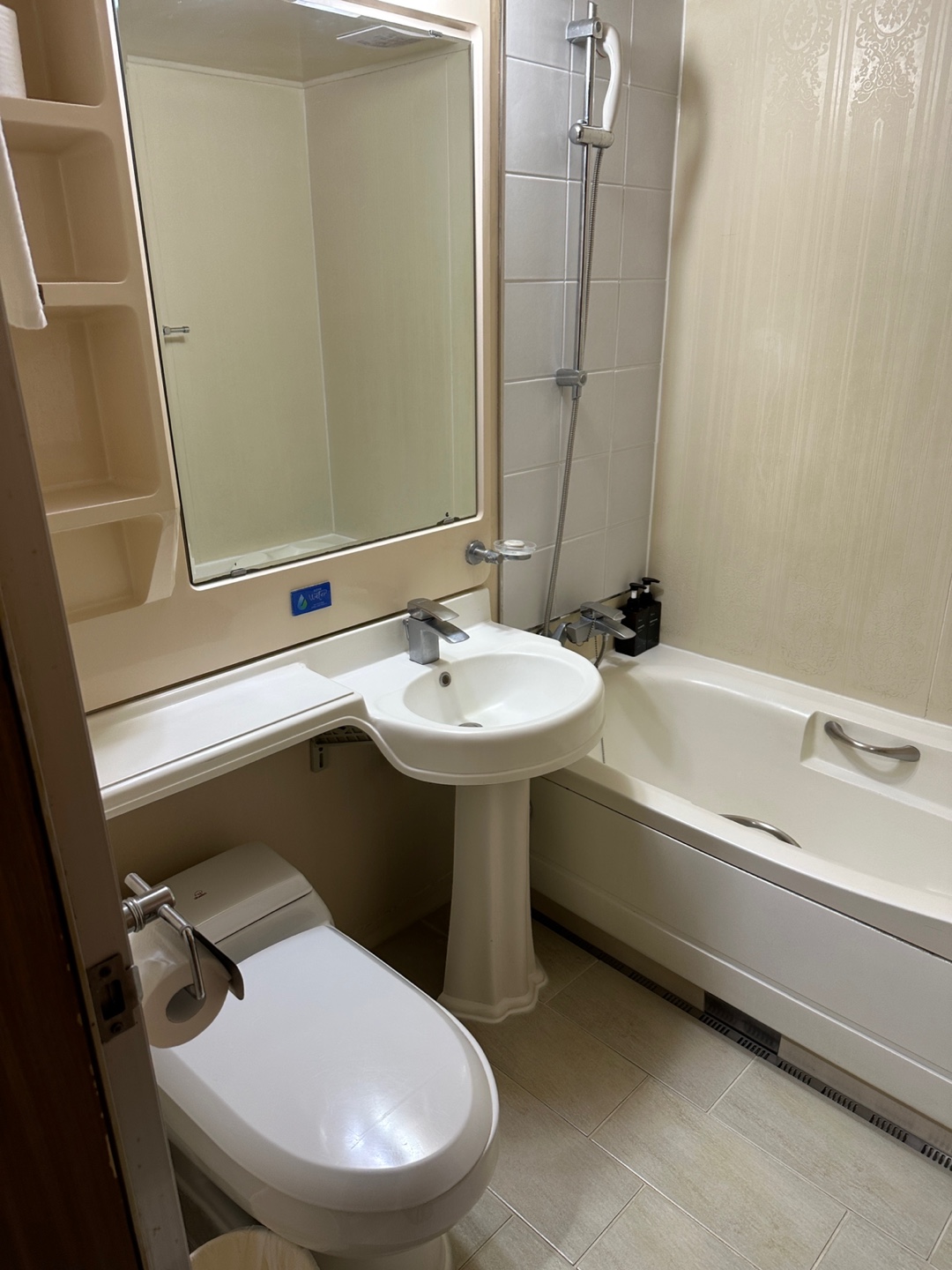 수압은 세고 따뜻한 물도 콸콸 잘 나온다.