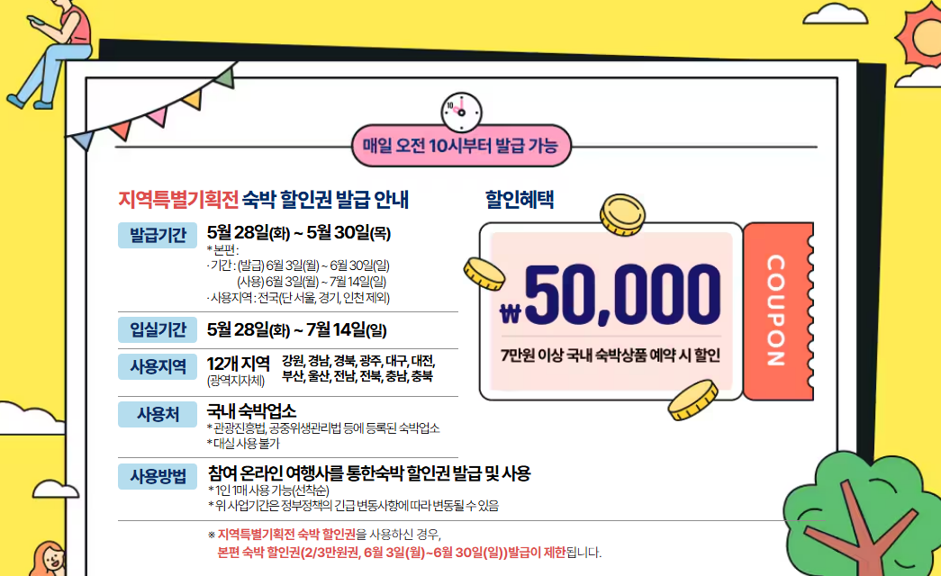특히 5월 28일 ~ 5월 30일까지는 "지역특별기획적 숙박 할인권"을 받을 수 있다.