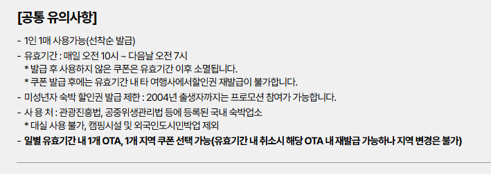 여행사에 따라서는 숙박페스타 쿠폰 이외에 추가 할인 쿠폰 혜택이 있는 곳도 있다.