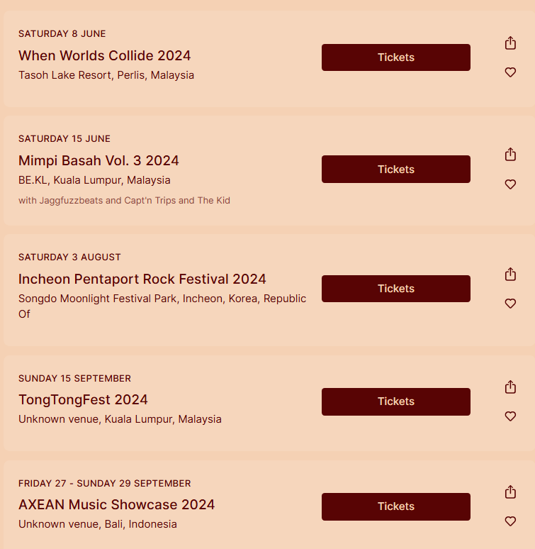 Golden Mammoth는 많은 페스티벌과 공연, 2019년 싱가포르의 Baybeats Festival, 같은 해 인도네시아 투어 등 여러 지역 공연에서 연주하고 있다.