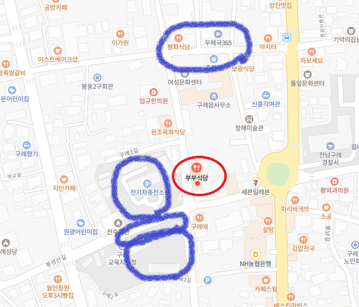 구례교육지원청이나 읍사무소 근처에 주차를 하고